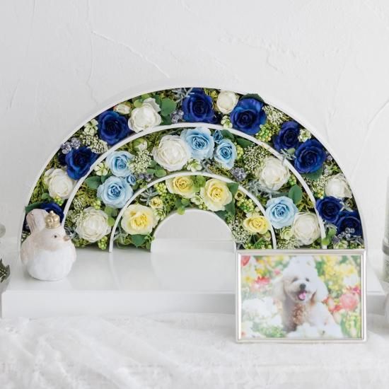 毎日感謝を伝え、心で対話する大切な空間である仏壇自体を、まるで「虹の橋」のイメージを再現したかのような、温かい雰囲気で彩りました。『虹の橋のペット仏壇』に触れる度に、